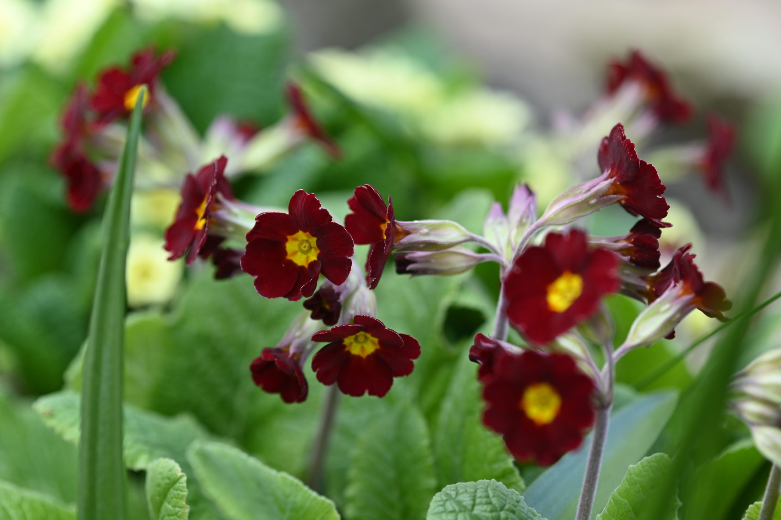 同じダブルプリムローズをほとんど同じ位置からレンズを替えて撮る。
