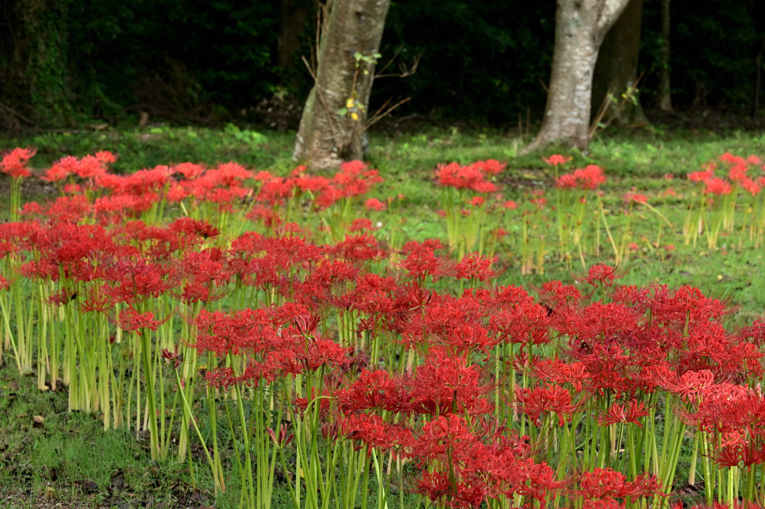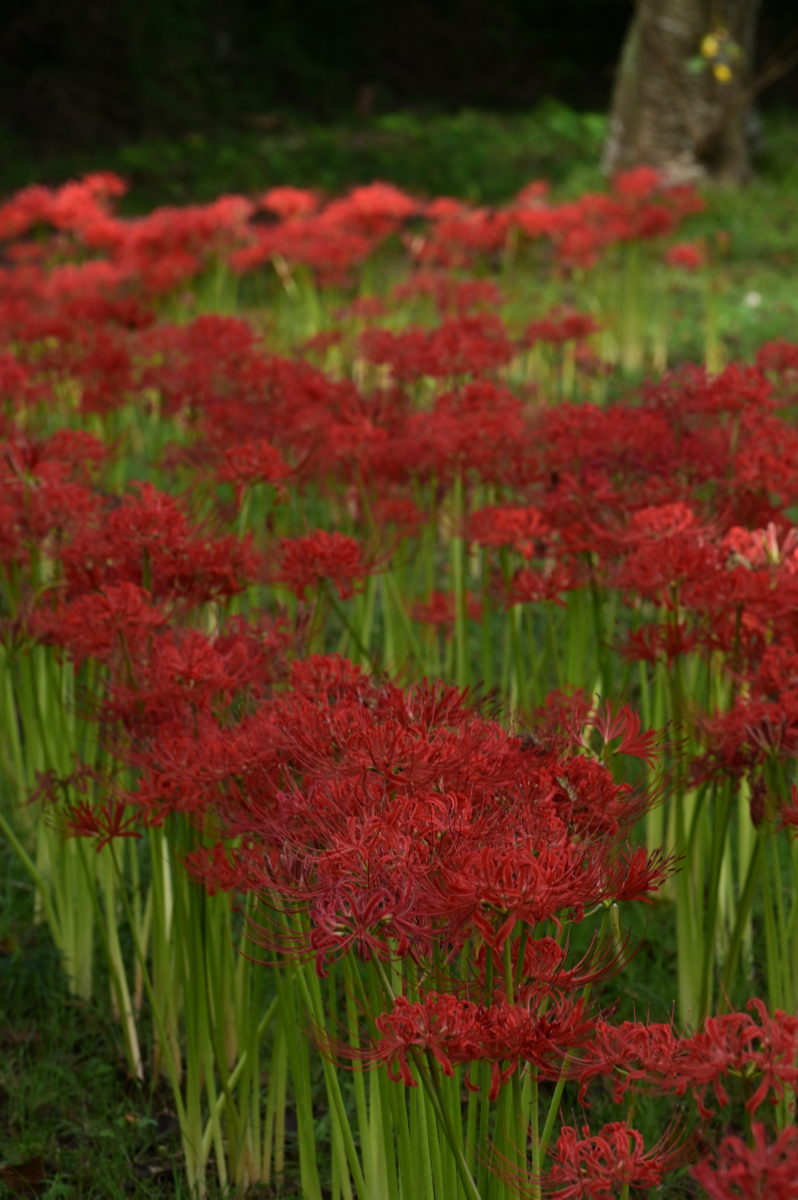 球根はまだ植えたばかりのようで間隔はスカスカだがサクラの木がぐるりと植えてある下に植栽され、数年後には見応えがしそう。今年初めてこのヒガンバナに気づいた。