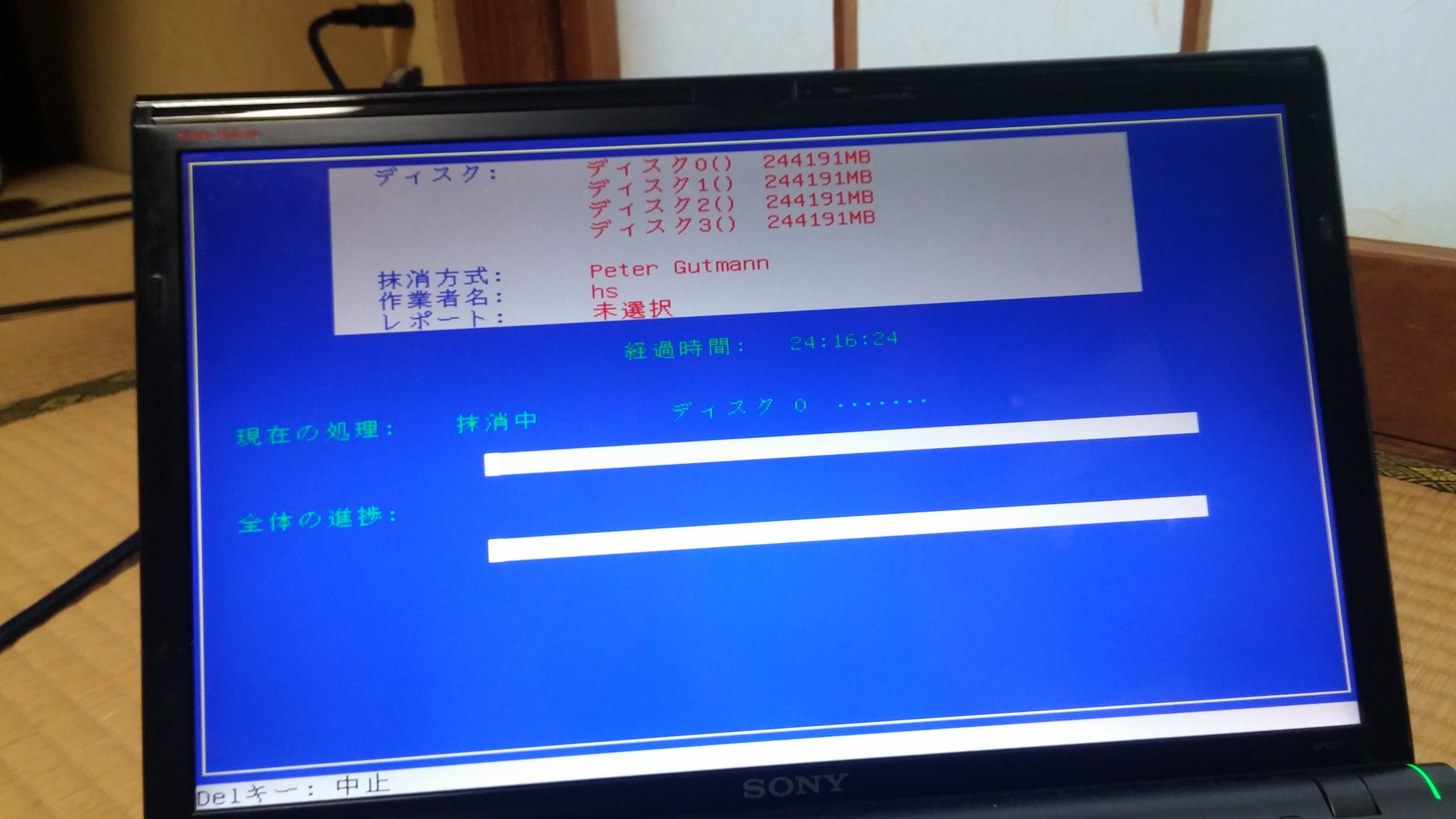 KHMソフトに薄い説明書がついているのでCDから起動で「ドライブ抹消」を選択、最終的にgatmannグートマン方式にした。