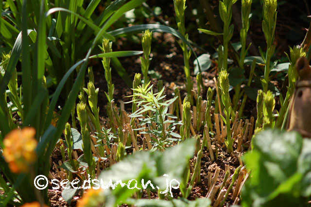 枯れていた発芽済みのもの再萌芽:2004.3.16 未発芽分も発芽:2004.3.31