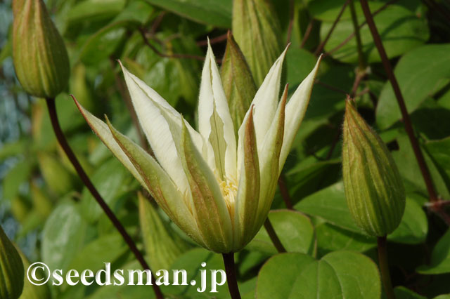 Clematis patens 2012年4月29日 投稿者: seedsman Clematis patens クレマティス パテンス 冬にほとんど剪定しなかったので、 中剪定が一般的のパテンス系だが弱剪定となってしまった。 そのせいか、 途中の枝には蕾がなく、 みんなツルの頂点付近に蕾が集まった。 フェンス全面を覆うようにはいかなかったけど、 花着きはまぁまぁってところよ。 前の記事Arisaema sikokianum次の記事 Deutzia gracilis