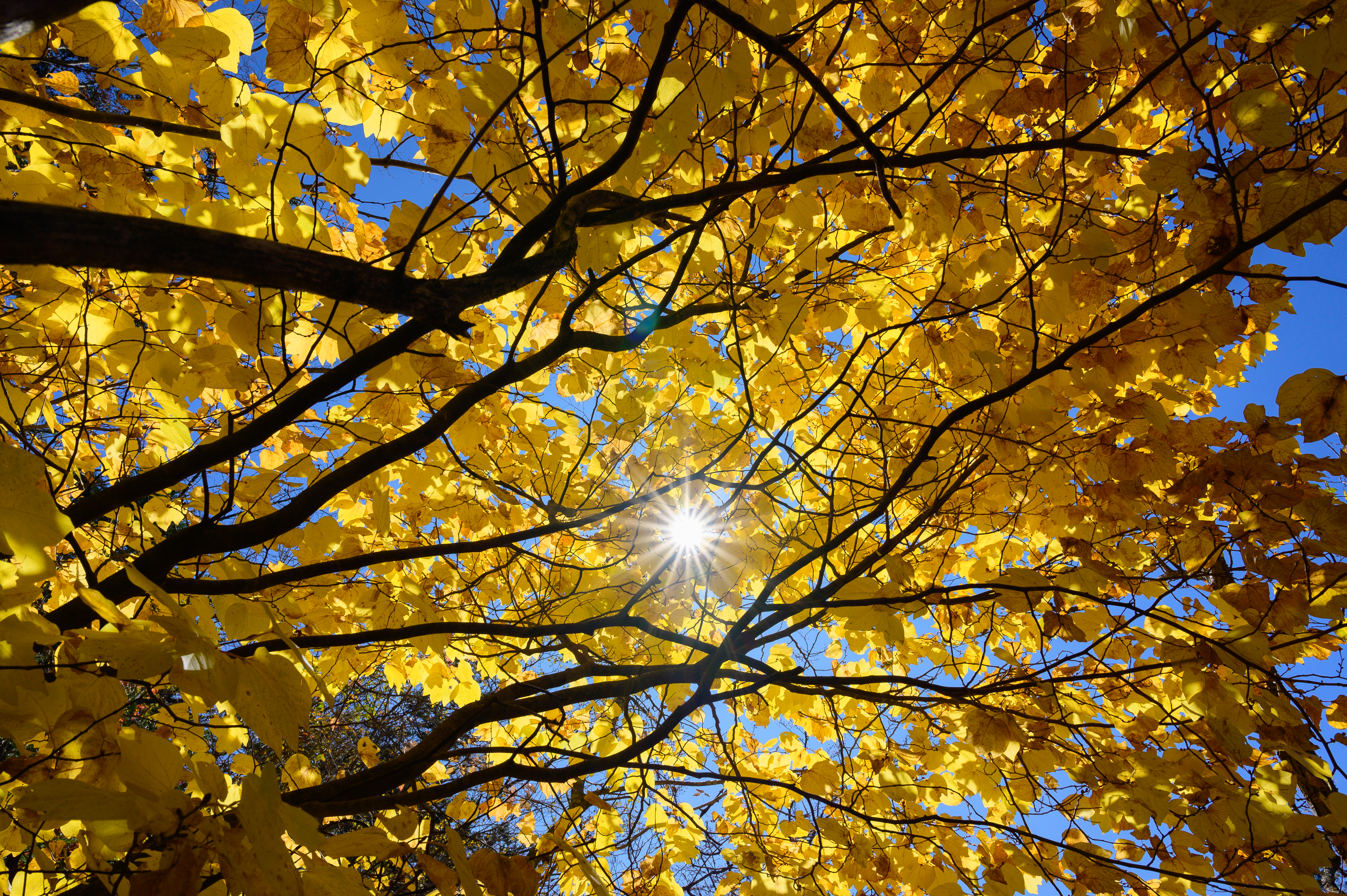 黄色く黄葉したカエデの仲間を下から撮ったが茶色く濁った色になった。それを少しでも明るい黄色にしたかったがやり始めるときりがない。どこまで?諧調・・・