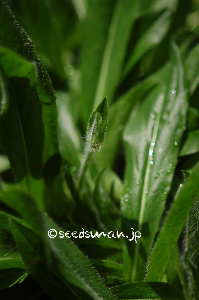 Hieracium aurantiacum ヒエラキウム アウランチアクム (コウリンタンポポ) 2012年産Calin(Rumania)キャリン 入数:多数 入手:2013.2.5 播種:2013.4.18 発芽:2013.4.29(多数) 長形コンテナ定植:2013.5.19 つぼみ確認:2014.4.27