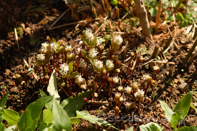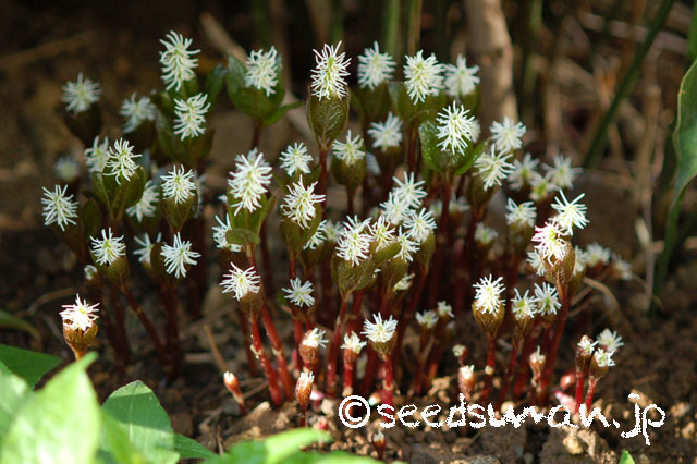 ついこの間まで土の下に眠っていたヒトリシズカの芽も、ぞっくりと乾いた土を持ち上げて一斉に芽を出した。と、思ったのも束の間で、すぐに花が。この花はいったいどうなっているものなのか、あまり考えたことがないが、赤茶色の茎葉に白いものが光ると怪しい雰囲気が漂う。これって毒草じゃないか、とさえ思う。でもこれがシャッターチャンスよね。年々増えてくる芽数にちょっと嬉しくなり、カメラを持つ手も弾む。