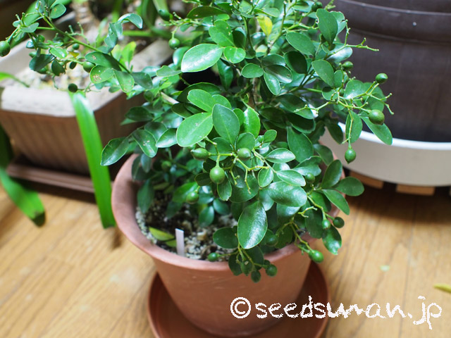 今年は花がたくさん咲いたおかげで初めて結実した。直径1センチもないほどの小さな実だが、良く見れば蜜柑の皮ようにでこぼこしてる。やっぱりミカン科だ。これがいずれは赤くなるらしいが。。。