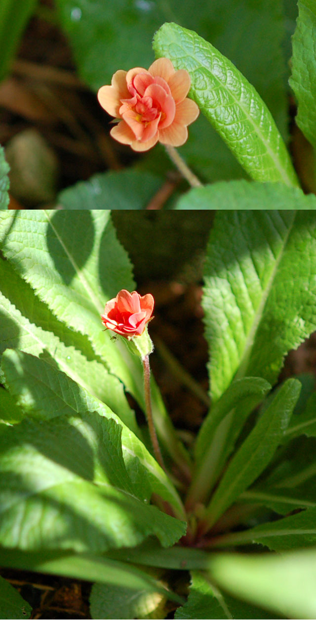 天候不順でまだ早春のような気候のせいもあり、プリムラ類はどれも元気がいい。 夏を越せないと困るので本当は開花してほしいが、今回のも無念な結果となるかしらん。。。(@_@;)