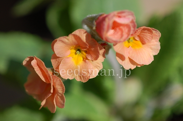 APS(アメリカプリムローズ協会)からのタネだが、なんとか数芽が発芽し、栽培するうち残ったのはたった一株だった。タネ蒔きから一年で開花となり、残念なことに開花後に枯死した。一つの花は5ミリくらいで、球状にかたまって咲く様は、大きければまるでポリアンサスプリムラのようである。サクラソウ科なのでしかり。