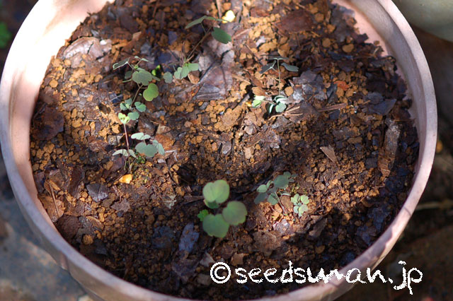 Thalictrum rochebrunianum タリクトルム ロケブルニアヌム (シキンカラマツ) 2011年産自家 播種:2012.9.15 発芽しかかる:2012.10.4 発芽:2012.10.7(4芽) コンテナ寄せ植え:2013.4.28